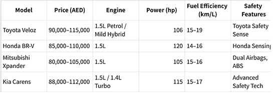 This table highlights that the Toyota Veloz price in UAE provides a competitive combination of features, efficiency, and safety.